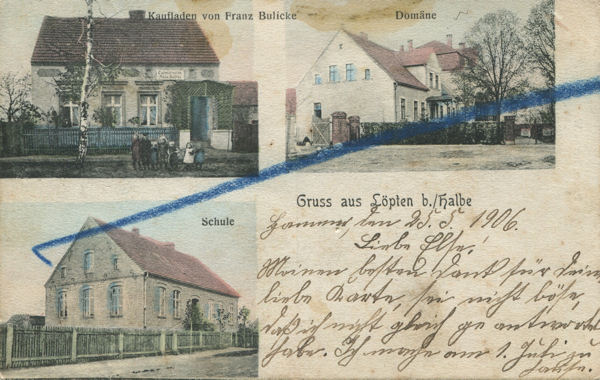 | Postkarte Löpten, 1906 gelaufen | Ausschnitt Postkarte Löpten |